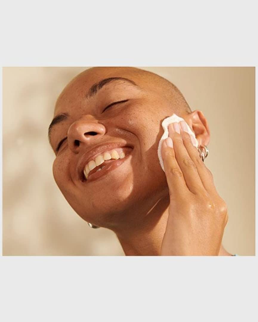 • پس از شستشوی صورت، مقدار کمی از تونر را روی یک پد پنبه‌ای (ترجیحاً پد قابل‌استفاده مجدد) بریزید.