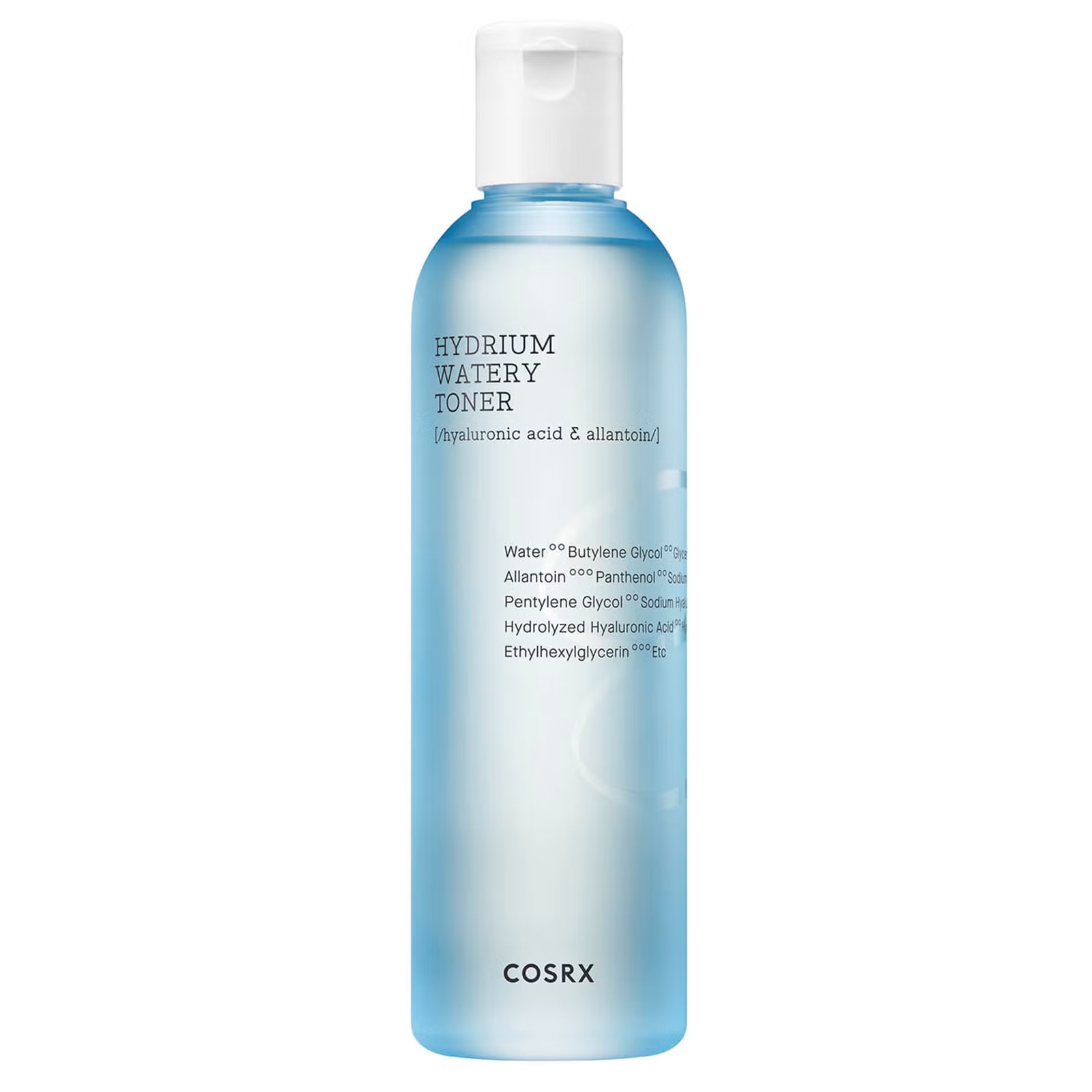 تونر مرطوب کننده هیدریوم کوزارکس یک تونر مرطوب‌کننده سبک و آبکی از برند کره‌ای Cosrx است که بخشی از خط تولید Hydrium برای هیدراته کردن پوست‌های خشک، حساس و مختلط طراحی شده است. این محصول با فرمول مینیمال (حداقل مواد) و بدون الکل، پارابن، سولفات و عطر، بر پایه اسید هیالورونیک و ویتامین B5 (پانتنول) ساخته شده و هدف اصلی‌اش آبرسانی عمیق، تسکین التهاب و آماده‌سازی پوست برای مراحل بعدی روتین مراقبت پوستی است. این تونر به عنوان “شیشه آب تازه برای پوست” توصیف می‌شود و پوست را بدون حس چسبندگی، تازه و درخشان می‌کند.