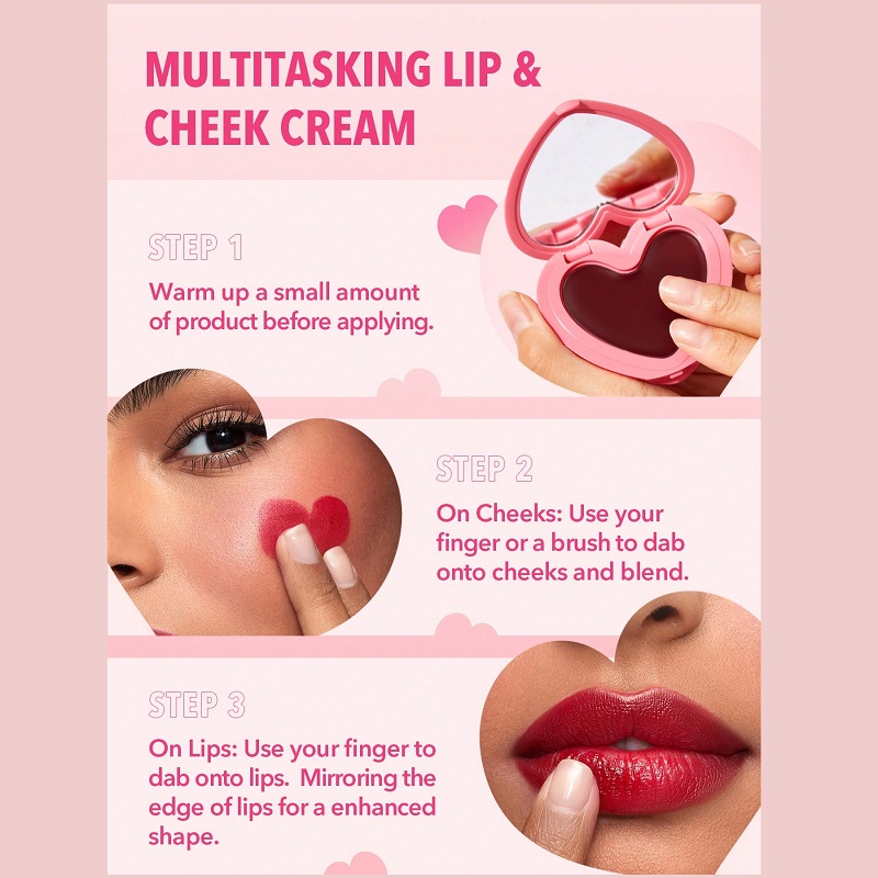 رژگونه کرمی قلبی شیگلم دارای بافتی نرم و ابریشمی بوده که بخوبی بر روی پوست قرار می گیرد و آرایشی زیبا را برای شما به ارمغان می آورد. می توانید از این محصول بر روی لب های خود نیز استفاده نمایید.