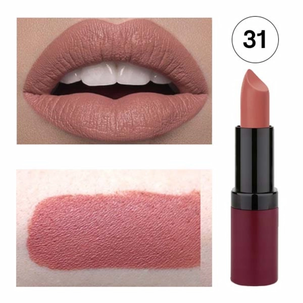 - رژ لب مات گلدن رز مخملی دارای رنگبندی متنوع