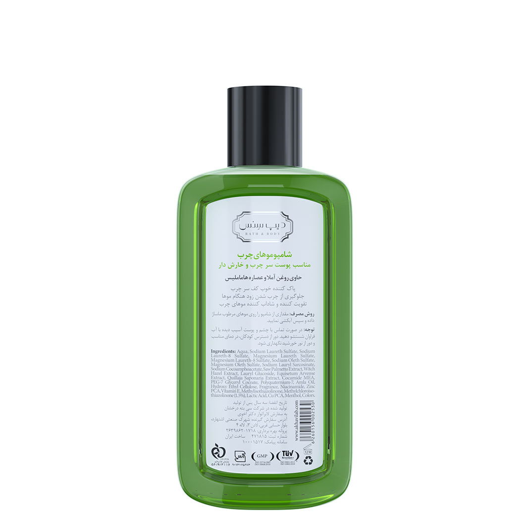 شامپو موهای چرب دیپ سنس برای کنترل چربی و خارش پوست سر طراحی شده است. این شامپو با روغن آملا (غنی از ویتامین C) و عصاره هاماملیس، علاوه بر پاکسازی عمیق، به جلوگیری از چرب شدن زودهنگام موها کمک میکند. این محصول با ترکیبات تقویتی خود، موها را شاداب کرده و مناسب افرادی است که از چربی زودهنگام پوست سر رنج میبرند.