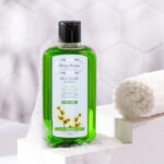 - شامپو را بهطور یکنواخت روی کف دستان خود بمالید و سپس به آرامی روی پوست سر و موها بزنید.