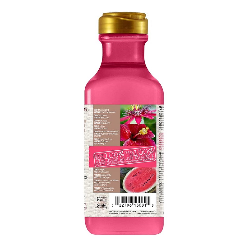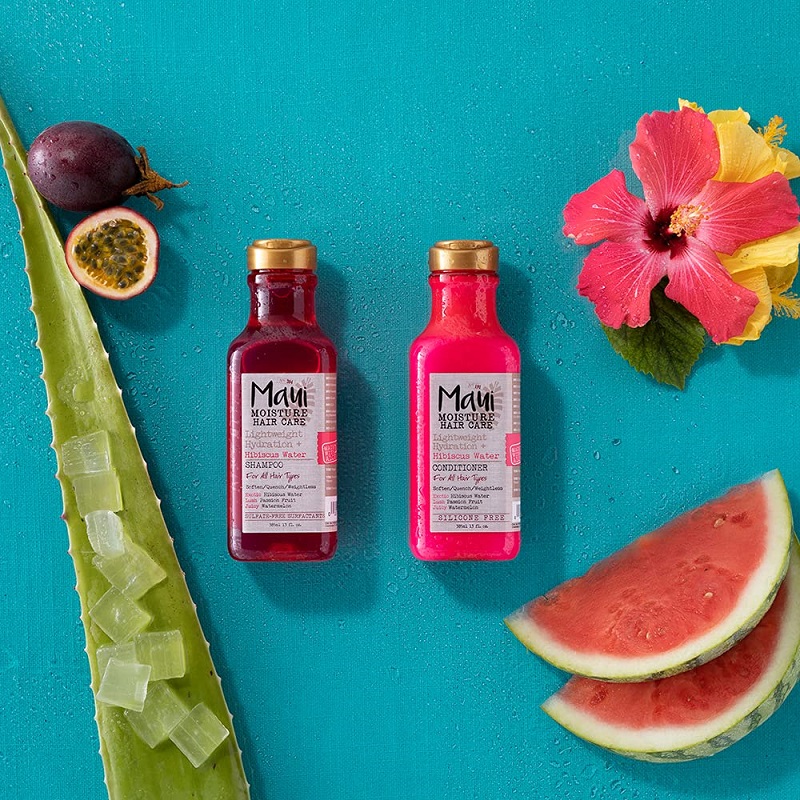 شامپو روزانه آبرسان گل ختمی مائوئی مویسچر Maui Hibiscus Water دارای فرمول باکیفیت و سبک و حاوی عصاره های طبیعی جهت آبرسانی روزانه انواع مو و ایجاد موهایی شاداب و تمیز به همراه رایحه دلپذیر است، حسی که ما را به قلب تابستان، در جزیره گرمسیری مائوئی هاوایی می برد. شامپو آبرسان مائوئی حاوی آب گل ختمی، عصاره میوه پشن فروت و عصاره هندوانه جهت آبرسانی و شادابی موها است، این ترکیب همچنین حاوی آب آلوئه ورا و آب نارگیل به عنوان استارتر به جای آب دیونیزه است. نتیجه احساس موهایی نرم، سبک و حجم دهی شده است. در فرمولاسیون این محصول از سولفات، سیلیکون، پارابن استفاده نشده و دارای فرمول وگان می باشد.