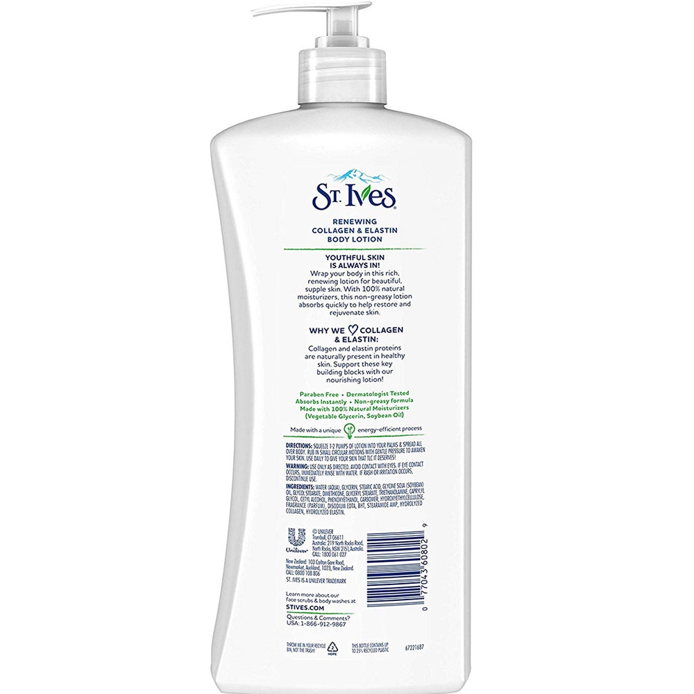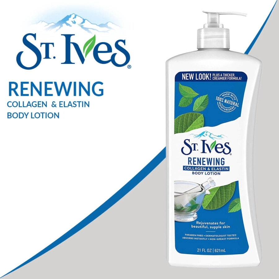 St. Ives Renewing Collagen & Elastin Body Lotion یک لوسیون بدن اقتصادی، مؤثر و جوانساز است که: