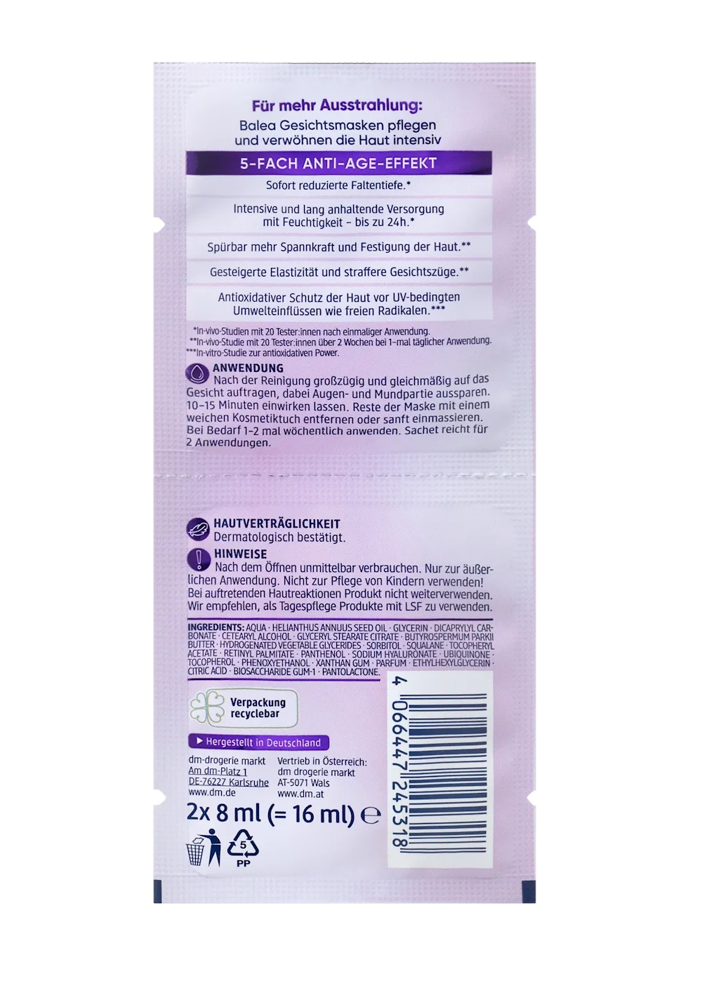 ماسک صورت رتینول باله آ با ترکیبی از مواد تشکیلدهنده فعال رتینول، اسکالان گیاهی و ویتامین E، تأثیری پنج برابری در برابر علائم پیری پوست دارد. این فرمول بلافاصله عمق چین و چروکها را کاهش میدهد و رطوبتی قوی و طولانیمدت (تا ۲۴ ساعت) برای پوست فراهم میکند. استفاده منظم از این ماسک به طور قابل توجهی پوستی صاف تر، سفتتر و خوشرنگتر برای شما به ارمغان می آورد. این ماسک صورت همچنین محافظت آنتیاکسیدانی برای پوست در برابر تأثیرات محیطی ناشی از اشعه ماوراء بنفش مانند رادیکالهای آزاد ارائه میدهد.
