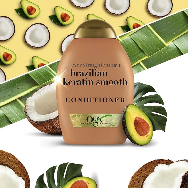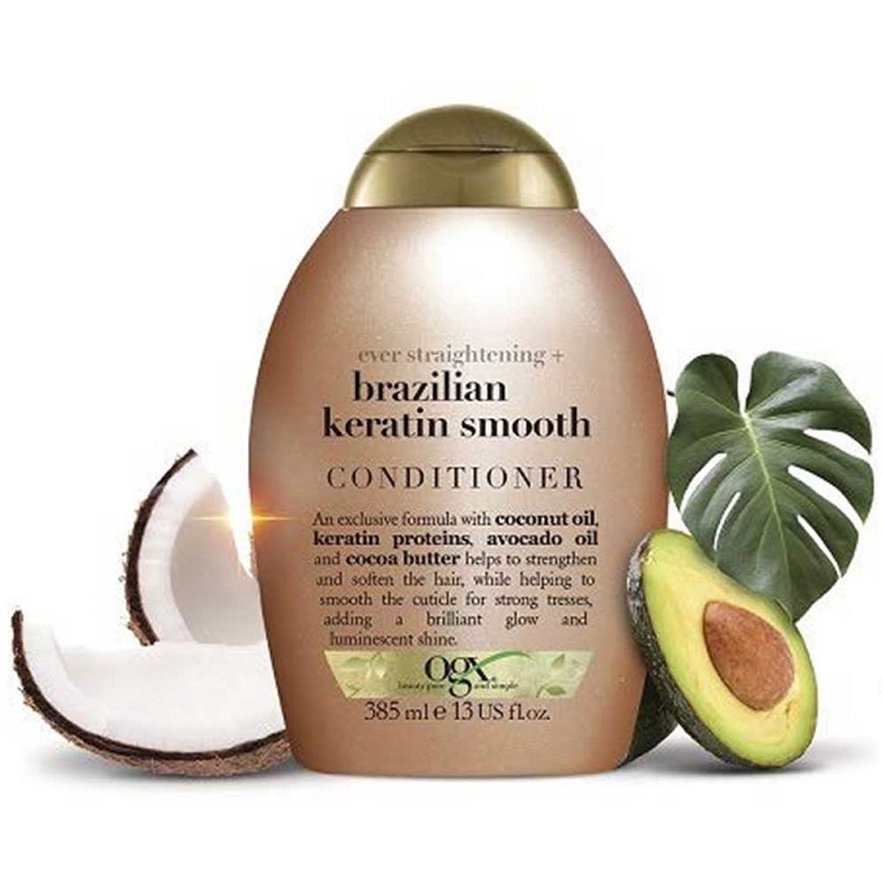 نرم کننده صاف کننده کراتین برزیلی او جی ایکس Ogx Brazilian Keratin Smooth محصولی بسیار خوب به همراه عصاره های ارگانیک جهت صافی و استحکام بخشی موها می باشد. نرم کننده صاف کننده او جی ایکس حاوی ترکیب منحصربفردی از پروتئین کراتین، روغن نارگیل، روغن آووکادو و کره کاکائو است که باعث تغذیه کامل، صافی، درخشندگی و استحکام موها می شود و سلامتی آن را احیا می کند.