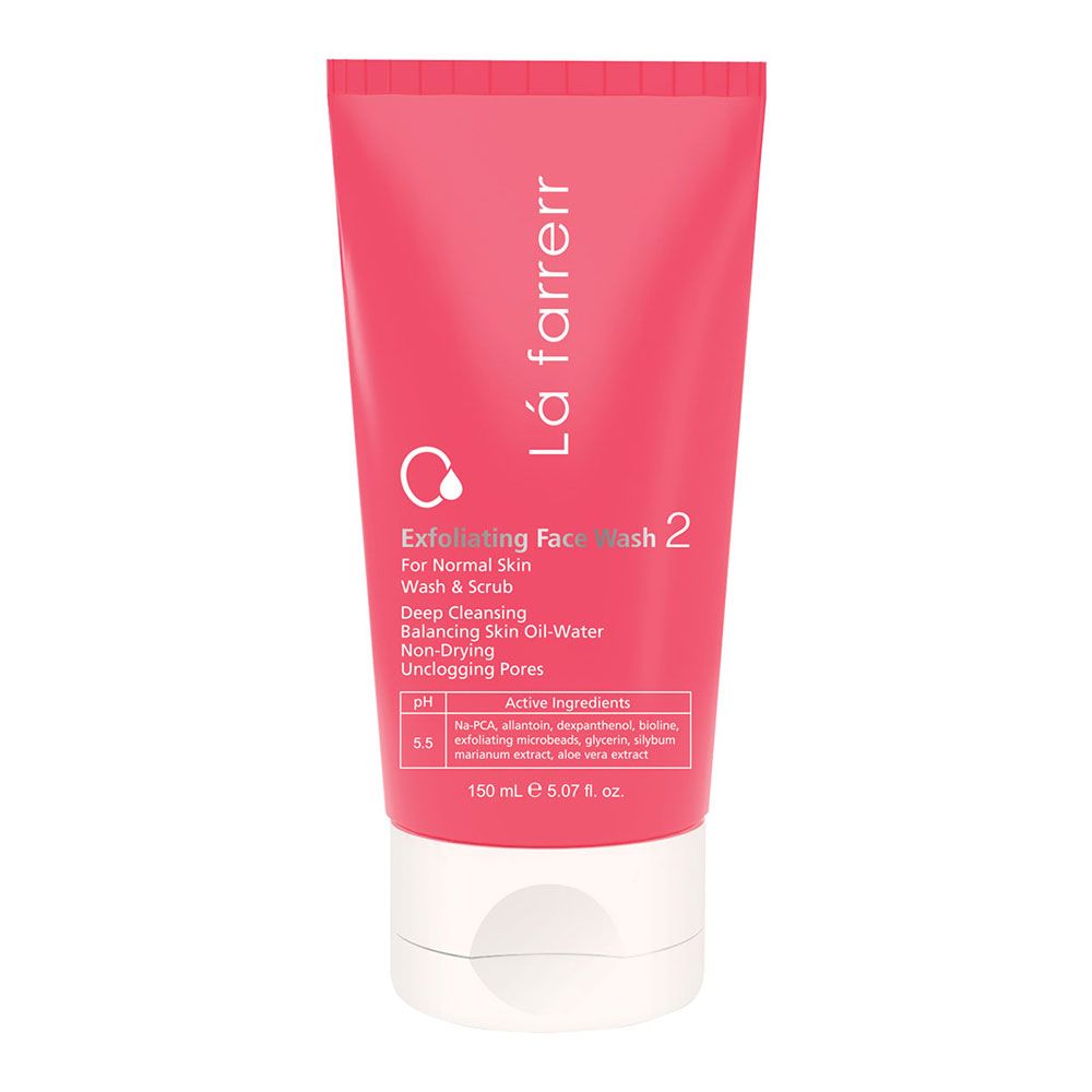 ژل شستشوی صورت مخصوص پوستهای معمولی لافارر حاوی اسکراب (دانههای لایهبردار)، آلانتوئین، بیولین، عصاره آلوئهورا، دکسپانتنول، گلیسیرین، عصاره خارمریم و سدیم-PCA میباشد که موجب لایه برداری، حذف سلولهای مرده و آلودگیها از سطح پوست، رفع جوش های سرسیاه، باز کردن منافذ مسدود شده، جلوگیری از ایجاد آکنه، بهبود خطوط چین و چروک و لکه های سیاه پوست، رطوبت رسانی بالا و همچنین این فیس واش باعث نرمی و لطافت پوست میگردد.