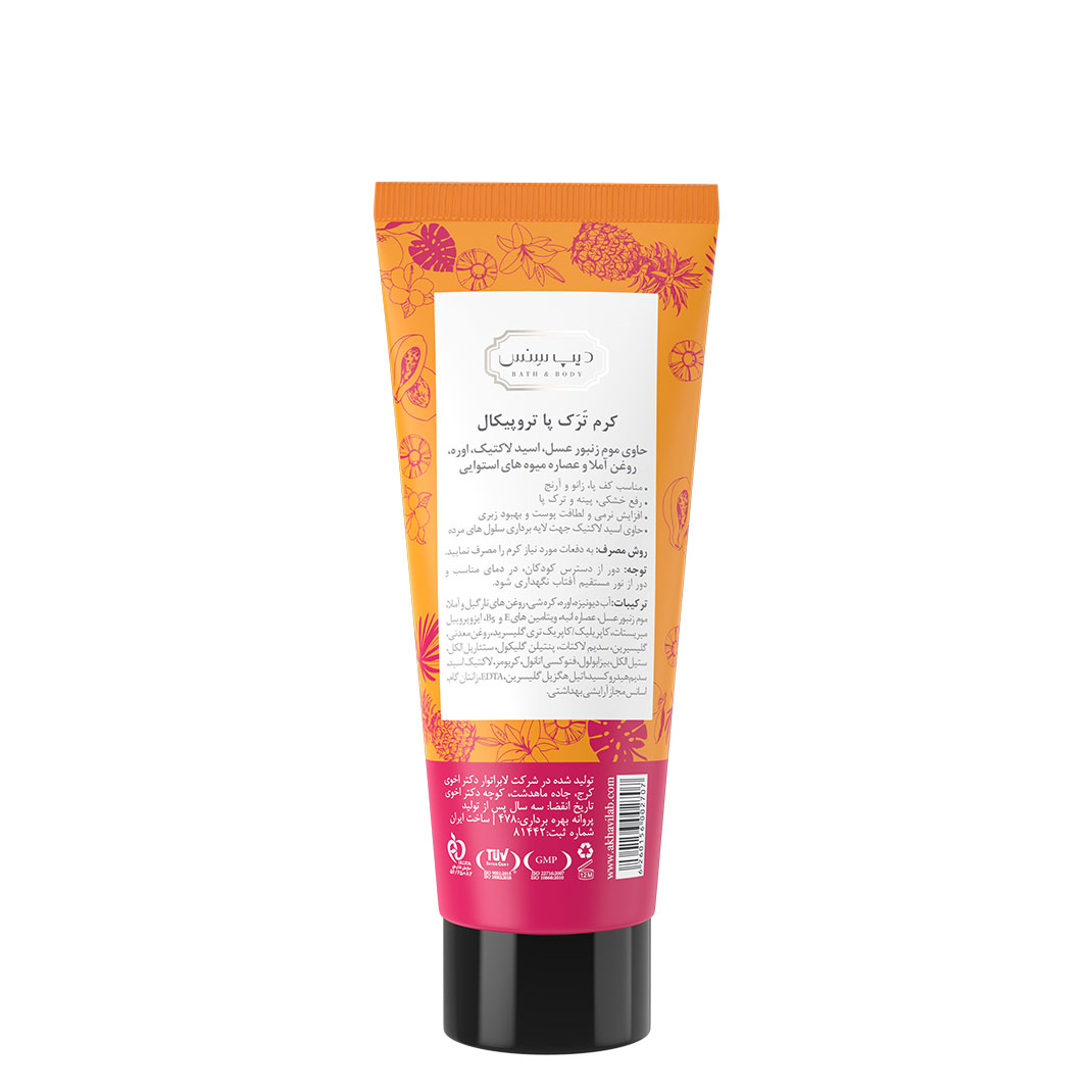 کرم ترک پا میوههای استوایی دیپ سنس با ترکیبی از مواد مرطوبکننده و ترمیمکننده، به بهبود پوست خشک و ترکخورده پاها کمک میکند. موم زنبور عسل بهعنوان یک مرطوبکننده طبیعی، با ایجاد لایهای محافظ روی پوست، از دست رفتن رطوبت جلوگیری کرده و نرمی پوست را حفظ میکند.