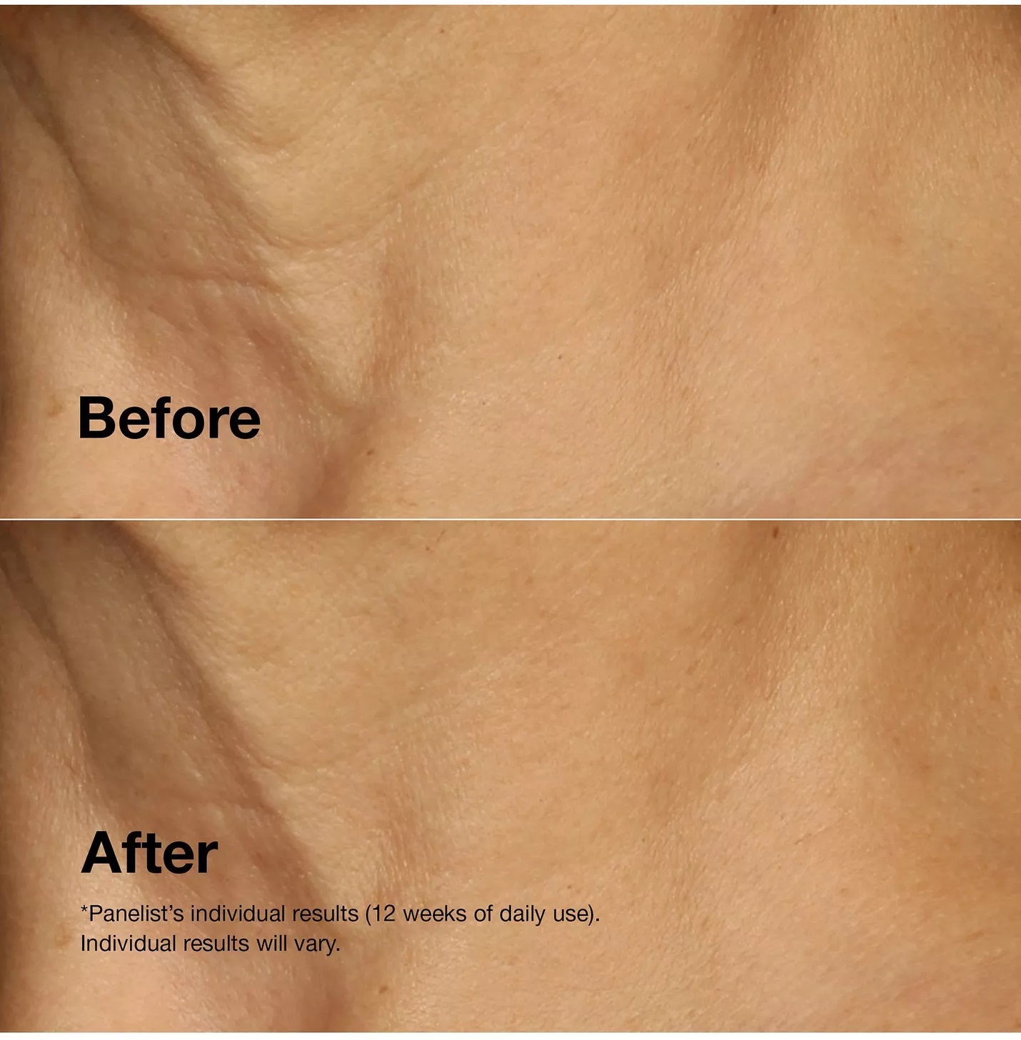 - این کرم بهطور بالینی ثابت کرده که ظاهر پوست صورت و گردن را لیفت میکند. در تست بالینی روی 36 زن پس از 12 هفته استفاده، 100% از شرکتکنندگان شاهد ظاهری لیفتشدهتر در ناحیه صورت و گردن بودند. همچنین 100% کاهش ظاهری در چینوچروکهای گردن (crepiness) و 97% کاهش قابلمشاهده در خطوط و چینوچروکهای گردن و خطوط پنجهکلاغی اطراف چشم گزارش کردند.