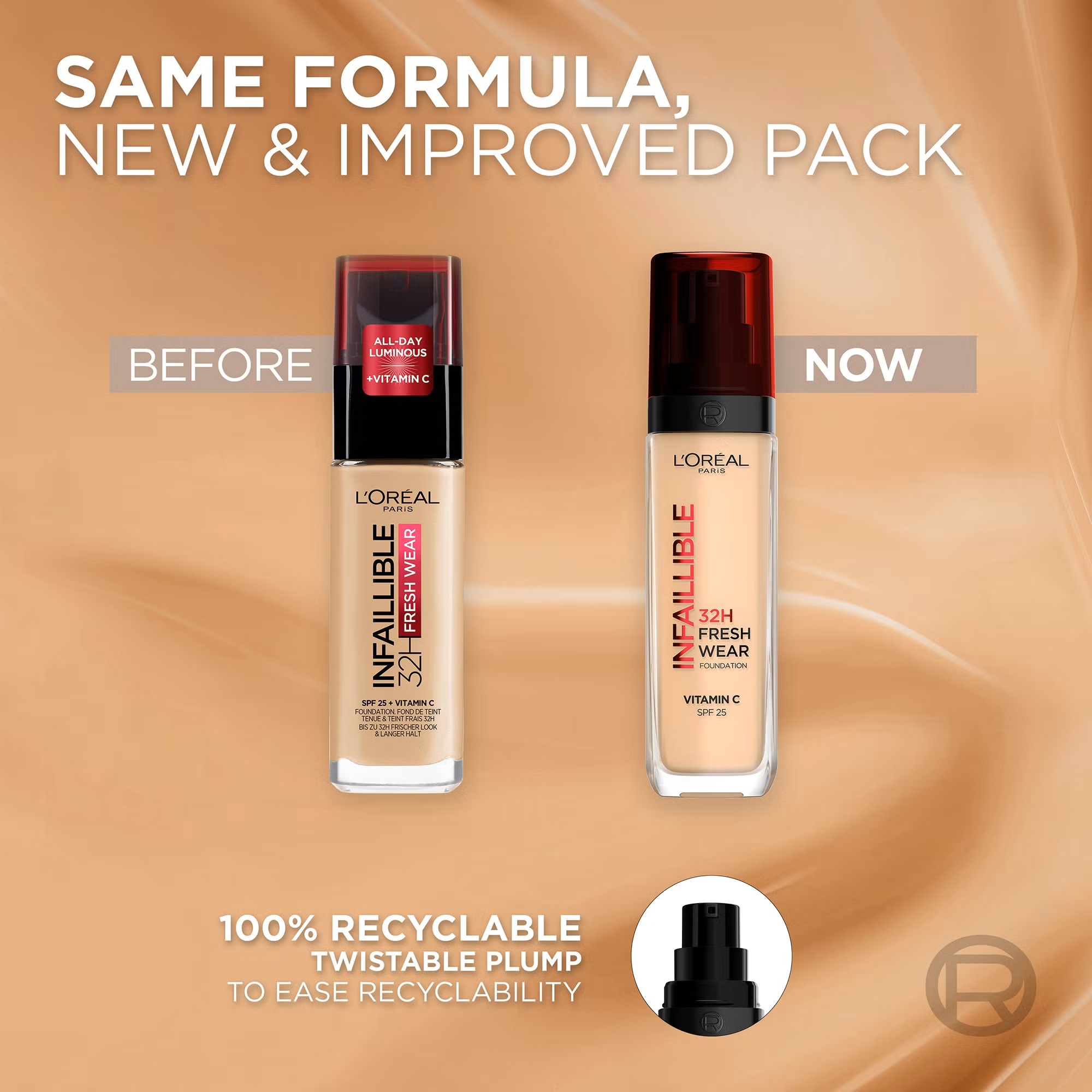 کرم پودر 32 ساعته اینفالیبل لورال یک کرم پودر مایع سبک و بادوام است که برای پوشش کامل و طبیعی پوست طراحی شده و تا ۳۲ ساعت دوام می‌آورد. این محصول با فناوری اکسیژن نوآورانه ساخته شده که پوششی سبک و تنفس‌پذیر ارائه می‌دهد، بدون اینکه سنگین یا کیکی به نظر برسد.