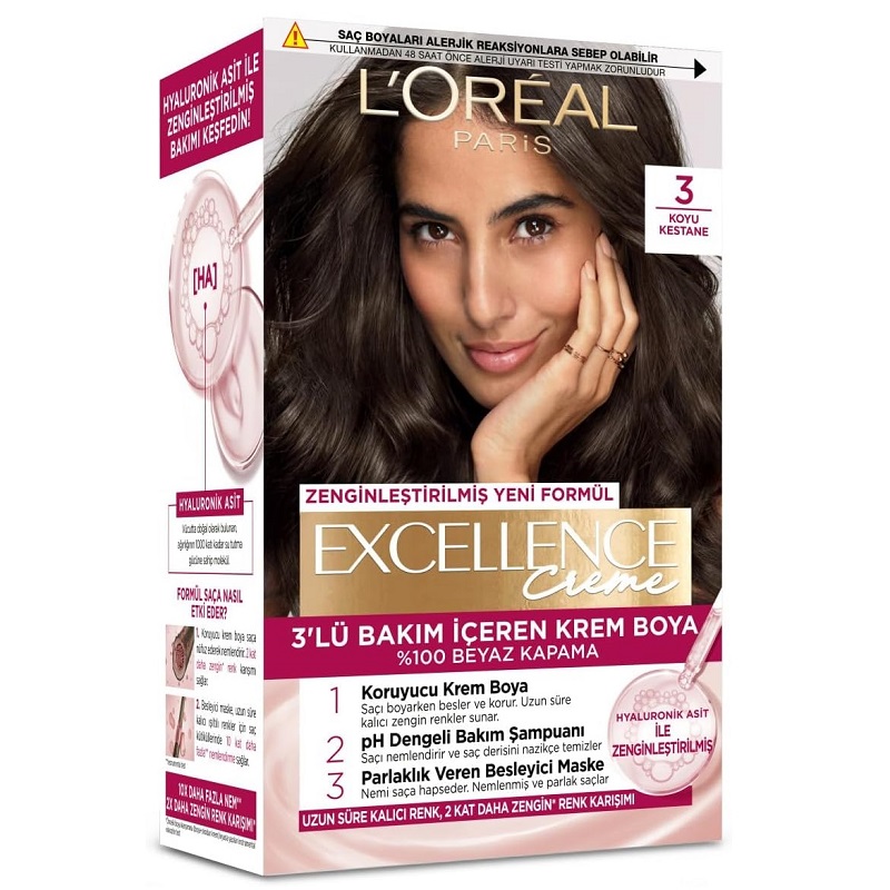رنگ مو اکسلانس لورال یکی از بهترین و پرفروش ترین رنگ موهای دنیا بوده و به دلیل داشتن تکنولوژی محافظت سه گانه و پرو کراتین های پیشرفته از ساقه های موی شما محافظت نموده، تغذیه کرده و زیبایی موهایتان را چندین برابر خواهد کرد. رنگ موی اکسلانس لورال 5 برابر بیشتر موهایتان را نرم خواهد کرد و بعد از استفاده موهایی براق و خوش رنگ برای شما به ارمغان خواهد آورد. تمامی رنگ های این محصول موهای سفید را پوشش خواهند داد و نگرانی بابت سفید ماندن موهایتان نخواهید داشت. وجود شامپو و کرم مو مخصوص در کیت رنگ مو Excellence باعث می شود که موها به مدت ۸ هفته محافظت شده و کاملا نرم و خوش حالت باقی بمانند. در این کیت رنگ مو از مقدار بسیار کمی آمونیاک استفاده شده که باعث آسیب رساندن به موهای شما نشده و سلامت موهای شما را حفظ می کند.